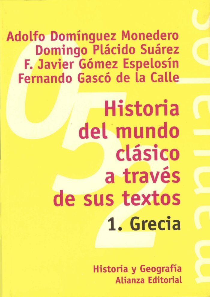 Este primer volumen de la Historia del mundo clásico a través de sus textos nos comenta el entramado histórico de Grecia antigua al hilo de unos ciento cincuenta textos-fuente. Si por su extensión resulta globalizadora de este periodo fundamental de la Antigüedad, la versatilidad de sus textos, además, ha permitido a sus autores dar entrada a un sin fin de aspectos significativos. Este volumen abarca la Grecia Arcaica -a cargo de A. Domínguez- la Grecia Clásica -D. Plácido-, la Grecia Helenística -F. J. Gómez Espelosín-.